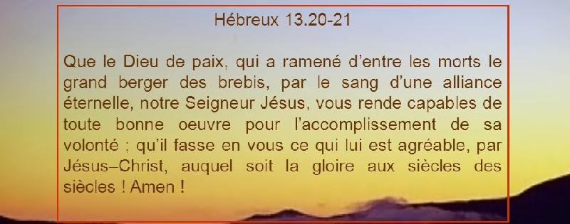 Voici, je me tiens à la porte, et je frappe ; si quelqu’un entend ma voix et m’ouvre la porte, j’entrerai chez lui, et je souperai avec lui, et lui avec moi.