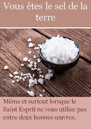 En un mot il se convertit, il naît de l’Esprit, il demande à Christ de faire de lui un grain de sel. À cet instant Dieu l’Esprit Saint prend possession de Son « temple » c’est-