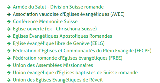 FEPS fédération des églises protestantes de Suisse. Qui est membres? OHHH l’Église protestante de Genève EPG et Église évangélique libre de Genève EELG!!! Mais, Mais, EELG, si je ne m’abuse, elle fait partie du RES Réseau Évangélique Suisse non? Formidable, nous sommes tous frères! Hein? Si, si, ne dit-on pas