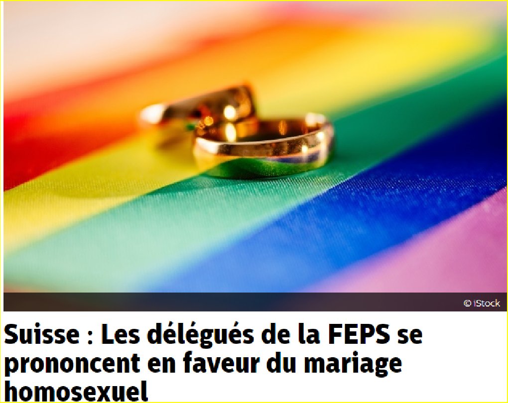 Mon Dieu que la Suisse évangélique est belle, celle dont est issue le mouvement réformateur. Vous devriez avoir honte! Sortez de ces églises avant que le jugement de Dieu ne tombe aussi sur vous.